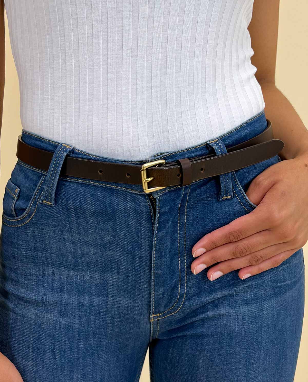 ¿Estás buscando un cinturón de cuero delgado y sencillo que realce discretamente y de manera funcional tu atuendo? Saluda a «Birte». Práctico y cómodo, ya sea como cinturón de jeans o pantalón. Simplemente el clásico absoluto entre los cinturones de mujer. En un discreto color marrón y con una hebilla dorada clásica a juego, te apoyará perfectamente en tu vida diaria. Sin embargo, «Birte» es sobre todo una cosa: ¡robusta! Fabricada con cuero de búfalo de alta calidad, «Birte» podrá acompañarte y a tu atuendo durante mucho tiempo. Además, está disponible en una amplia gama de longitudes (75-115 cm).