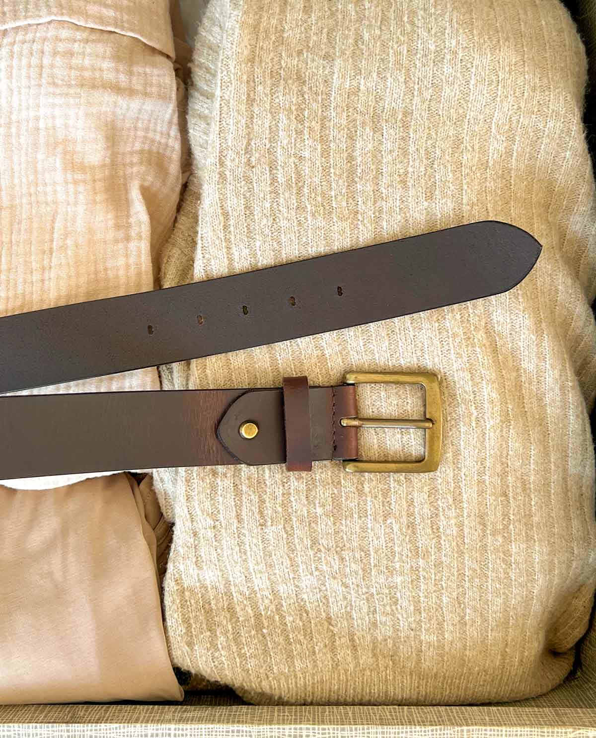 ¿Buscas un cinturón de cuero delgado y sencillo que mejore discretamente y de manera funcional tu atuendo? ¡Di hola a «Jori»! Práctico y cómodo, ya sea con tus jeans de todos los días o como cinturón de pantalón. Simplemente el clásico absoluto entre los cinturones vintage. Disponible en varias versiones y con una hebilla clásica dorada que te apoyará perfectamente en tu día a día.